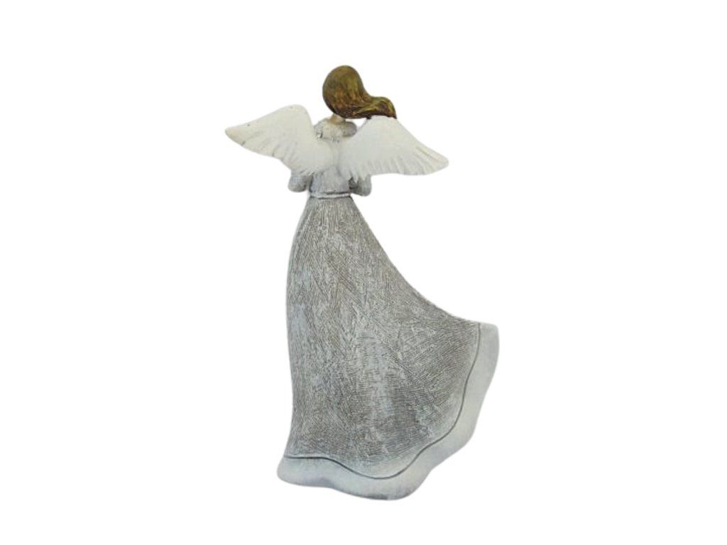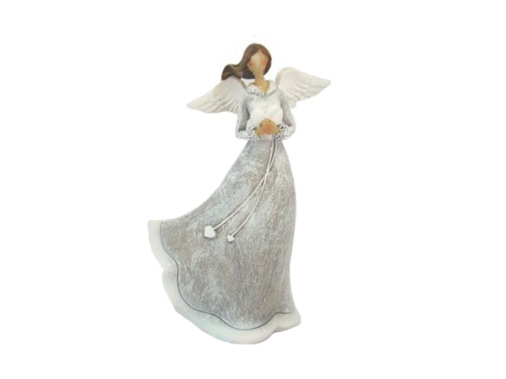 - Krásná dekorace, šedý anděl se symbolem lásky.