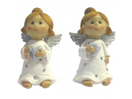 Jeden z andílků ze sady drží srdíčko bez nápisu, druhý má srdíčko s nápisem ANDĚL ŠTĚSTÍ.