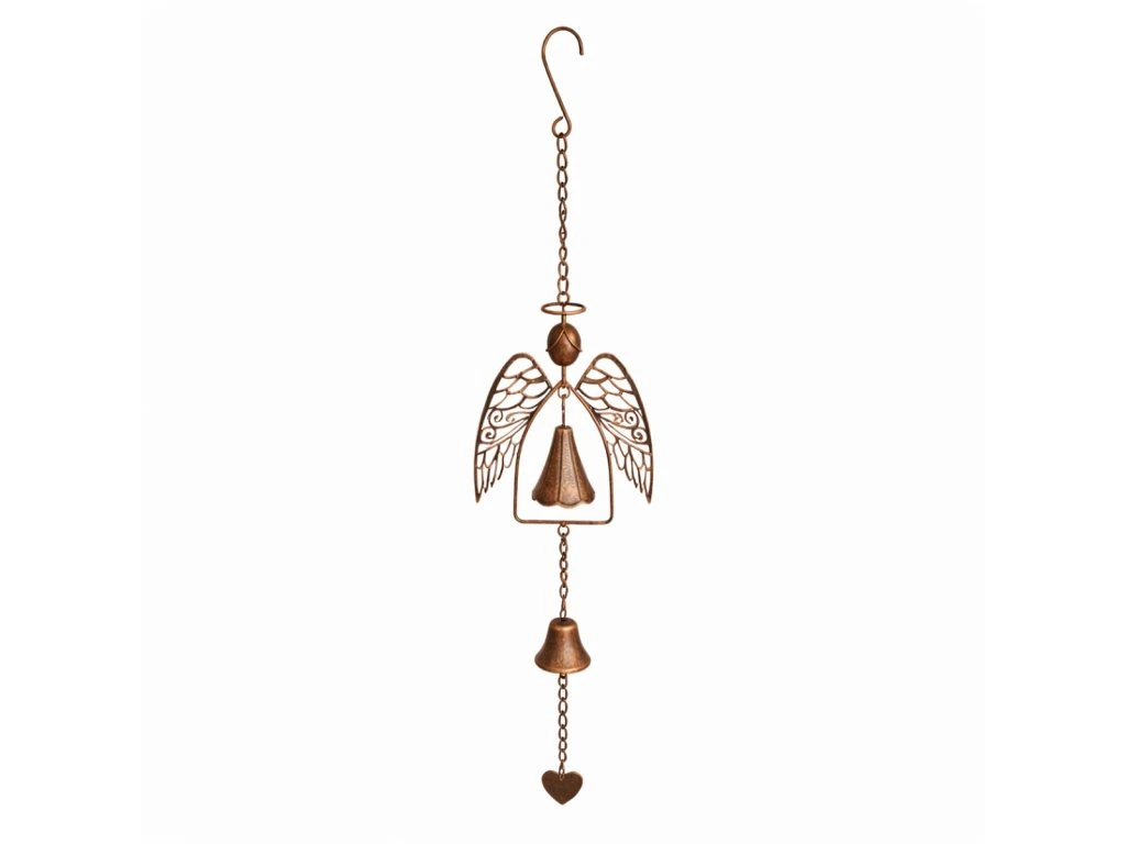 Kovová závěsná dekorace Anděl se zvonkem a srdcem