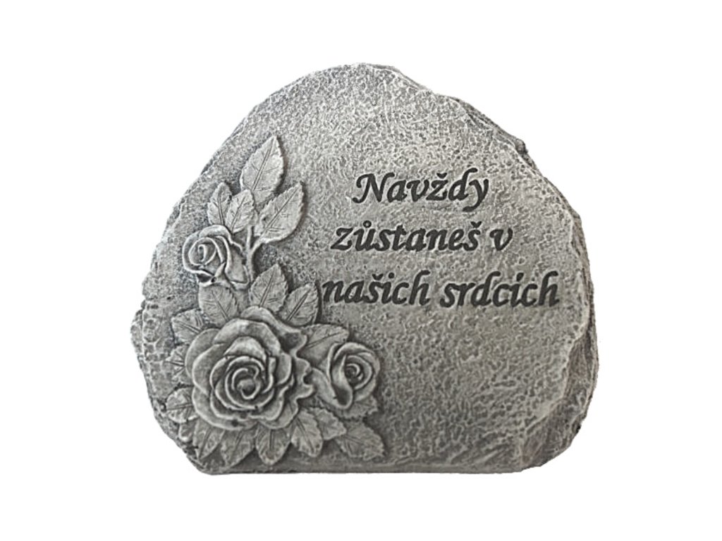 - Smuteční dekorace květina na kameni s nápisem NAVŽDY ZŮSTANEŠ V NAŠICH SRDCÍCH.