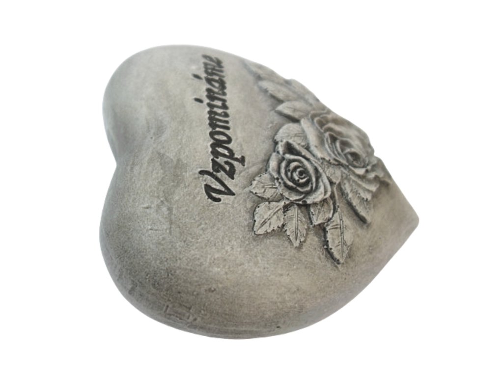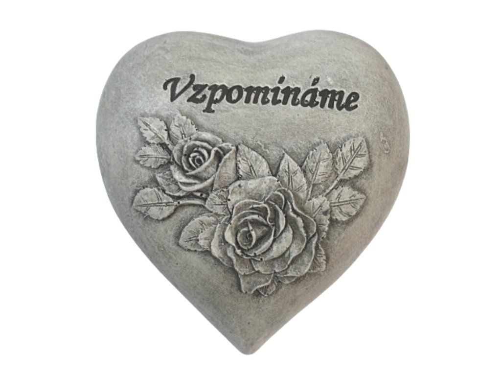 - Smuteční dekorace srdce s růžemi v barvě šedé patiny s nápisem VZPOMÍNÁME.