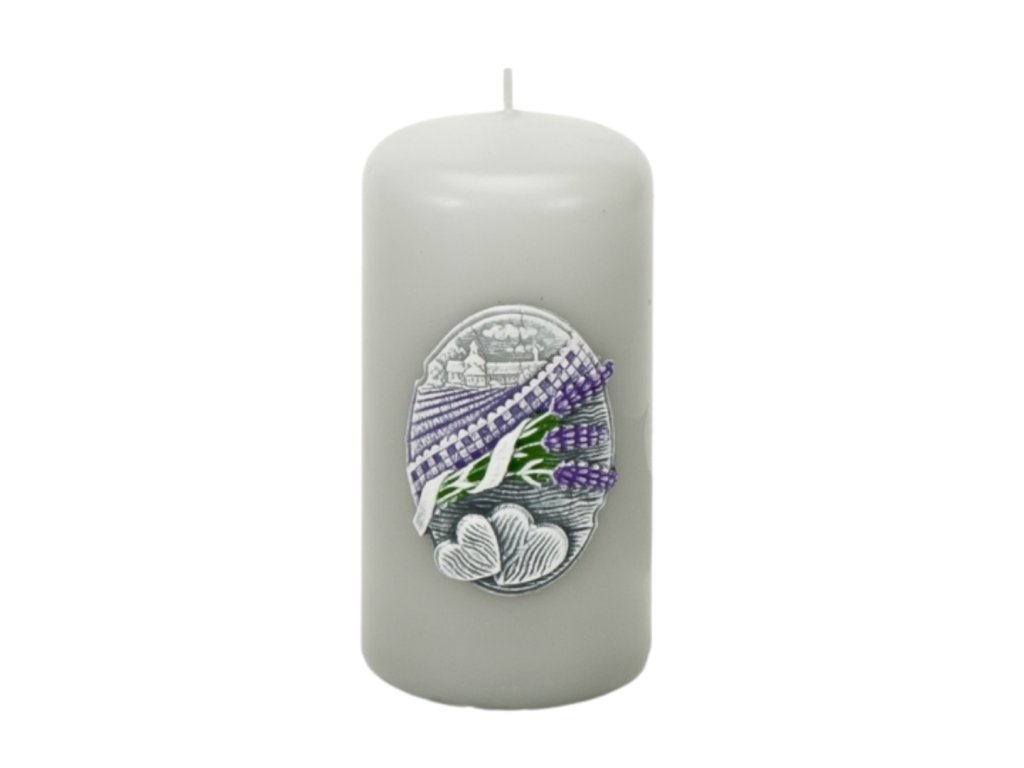 - Krásná svíčka s obrázkem ve stylu francouzské Provance ve tvaru válce vynikne kdekoliv, kde bude vystavena.